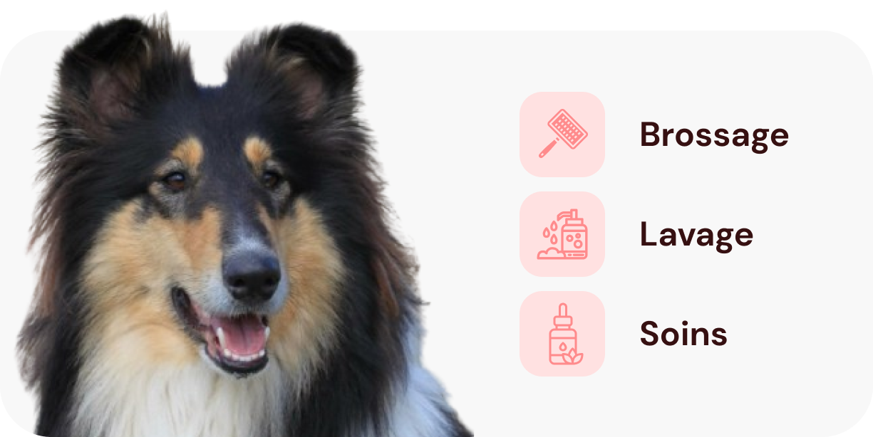 Du fait de son poil long et abondant, le Colley nécessite un entretien régulier : brossage régulier indispensable !