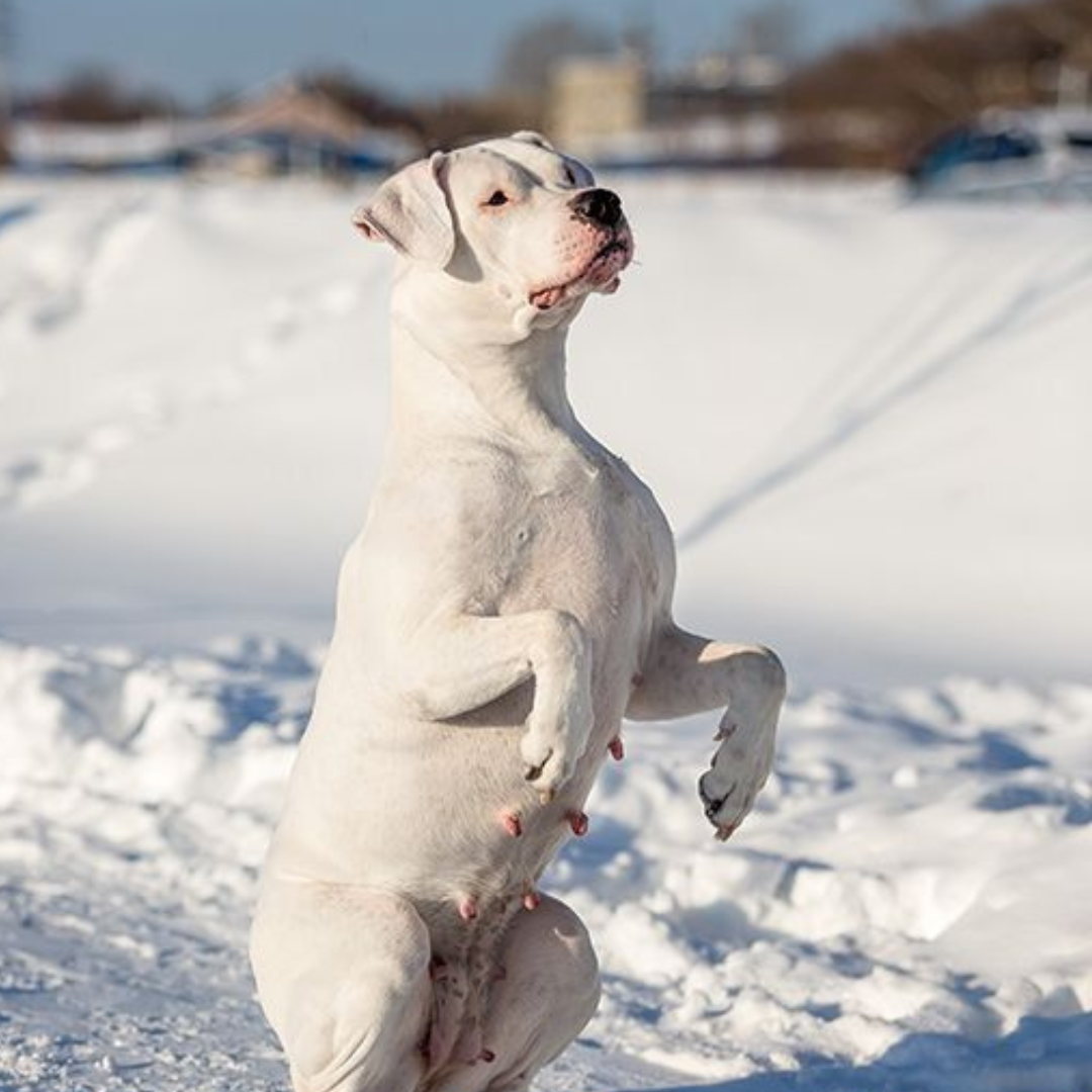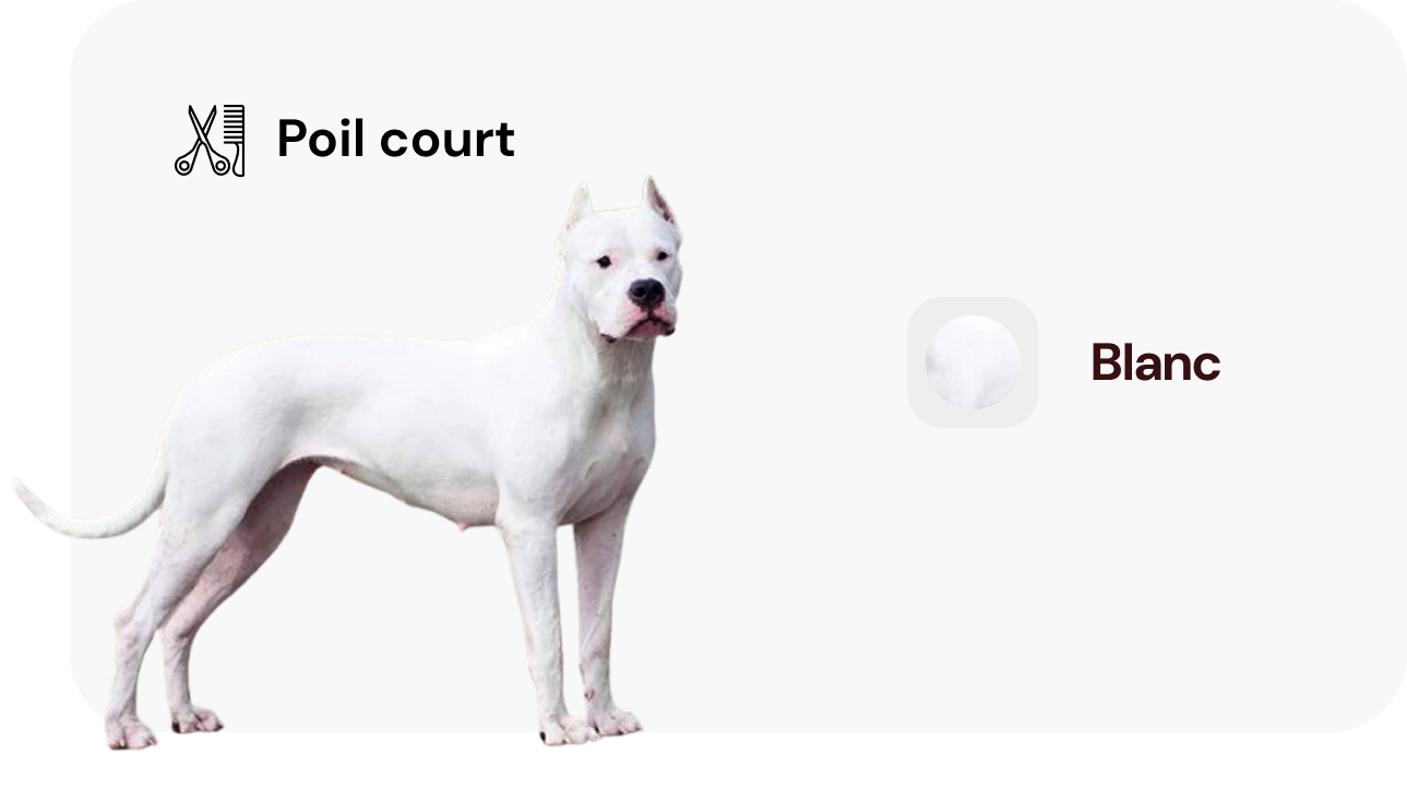Héritier d'un mélange subtil de races incluant le Dogue de Bordeaux et le Bull Terrier, ce chien se distingue par sa musculature puissante et son pelage immaculé. Compagnon dévoué, le Dogue Argentin fait preuve d'une grande sensibilité envers sa famille, tout en dévoilant un côté joueur et affectueux. Doté d'une énergie considérable, il nécessite une stimulation mentale et physique adaptée à sa nature athlétique.